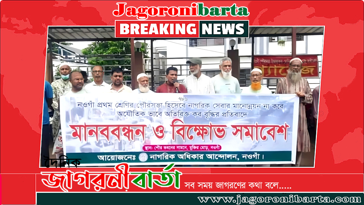 নওগাঁ প্রথম শ্রেনির পৌরসভা হিসেবে নাগরিক সেবার মানোন্নয়ন না করে অযৌতিক ভাবে কর বৃদ্ধির প্রতিবাদে মানববন্ধন ও বিক্ষোভ সমাবেশ অনুষ্ঠিত হয়েছে।
