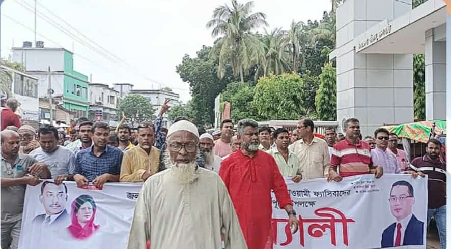 আওয়ামী ফ্যাসিবাদের পতন ও ছাত্র জনতার বিজয়ের বর্ষপূর্তিতে বিএনপির র্যালি। ছবি- ধূমকেতু প্রতিবেদক, বদলগাছী
